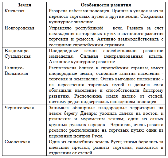 3. Сравните особенности развития русских земель в период раздробленности.