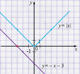 \(\begin{cases}y - |x|=0,\\ y=-x-3\end{cases}\)