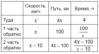 При обратном пути условие изменилось: часть пути он проехал со скоростью \(x\), а оставшуюся часть со скоростью \(x - 10\), затратив на обратный путь на полчаса больше. Поэтому составили следующее дробное рациональное уравнение: