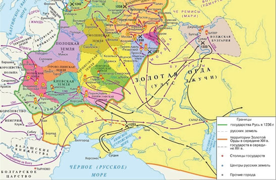 Направления походов: на Волжскую Булгарию, на Рязанские земли, на Москву, на Киев, на юг Руси, на Венгрию, Чехию и Польшу.