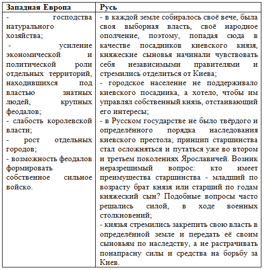 Задание 1. Используя учебник по истории Средних веков и материалы Интернета, сравните причины политической раздробленности в Западной Европе и на Руси.
