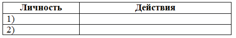 Укажите одно любое действие каждой из этих личностей, в значительной степени повлиявшее на ход и (или) результат этого события (процесса).