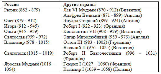 - продолжали развиваться дипломатические связи у русских княжеств со скандинавскими странами, Византией, Польшей, Чехией, Венгрией, германскими народами.