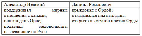 Задание 4. Сравните политику по отношению к Золотой Орде Александра Невского и Даниила Романовича.