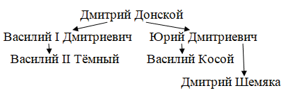 Задание 7. Составьте генеалогическую схему, отражающую родственные связи участников усобицы на Руси второй четверти XV в.