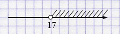 Если знак неравенства строгий (\(>\)  или \(<\)), то точку на координатной прямой делаем "выколотой" (незакрашенной), при записи промежутка используем круглую скобку.