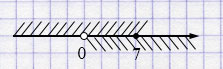 Если знак неравенства строгий (\(>\)  или \(<\)), то точку на координатной прямой делаем "выколотой" (незакрашенной), при записи промежутка используем круглую скобку.