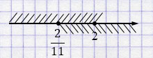 \( \begin{cases} a \le 2, \\[2pt] 11a \ge 2 / : 11 \end{cases} \)