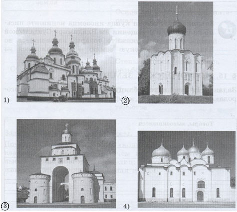 Задание 6. Какие из представленных ниже памятников архитектуры связаны с именем князя Андрея Боголюбского? Обведите цифры, которыми обозначены эти памятники архитектуры. Укажите названия данных памятников архитектуры.
