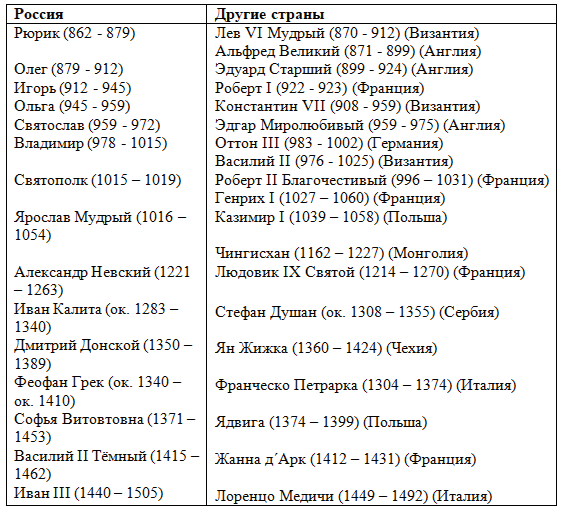 Задание 5. С помощью Интернета и учебника по истории России и истории Средних веков продолжите составлять в тетради (или в электронной форме) список известных исторических деятелей, живших в одно время.