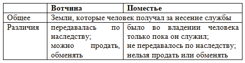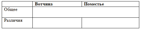 Задание 4. Заполните таблицу "Вотчина и поместье".