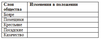 Задание 2. Заполните таблицу "Изменения в положении различных слоёв русского общества во второй половине XV в.".
