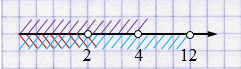 \( \begin{cases} x < 12,\\ x < 4, \\ x < 2 \end{cases} \)