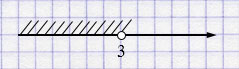 Если знак неравенства строгий (\(>\) или \(<\)), то точку на координатной прямой делаем "выколотой" (незакрашенной), при записи промежутка используем круглую скобку и точка не принадлежит промежутку.