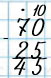 Вычитаю десятки: уменьшаю количество десятков уменьшаемого на 1. 3 - 2 = 1. Результат пишу под десятками.