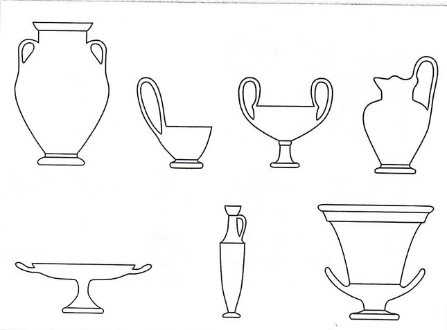 Е) Кратер - большой сосуд с широким горлом. В нём греки смешивали вино с водой.