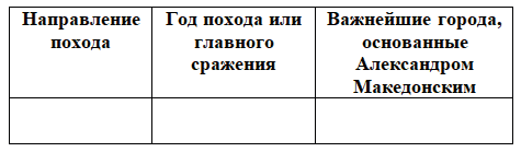 2. Вспомните, какие походы совершил Александр Македонский. Заполните таблицу.