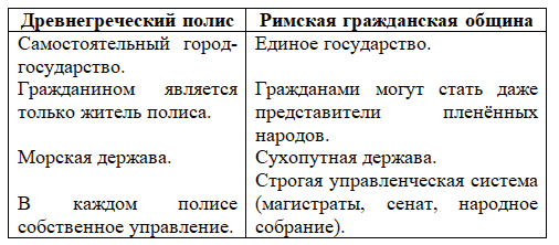 3. Чем отличается римская гражданская община от древнегреческого полиса? Ответ можно записать в виде таблицы. Воспользуйтесь текстом учебника.