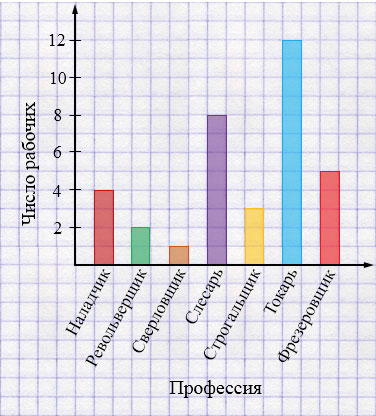 Столбчатая диаграмма используется для сравнения величин разных категорий. Каждой профессии соответствует столбец, высота которого пропорциональна числу работников.