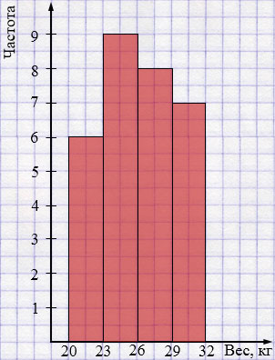 В оздоровительном лагере были получены следующие данные (с точностью до 0,1 кг) о весе 30 мальчиков: