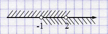 Если знак неравенства строгий (\(>\) или \(<\)), то точку на координатной прямой делаем "выколотой" (незакрашенной), при записи промежутка используем круглую скобку.