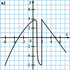 Значения аргумента, при которых функция обращается в нуль, называют нулями функции. На графике нули функции: точки пересечения графика с осью \(Ox\).