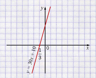 — \(y = 0\) при \(x = -\frac{1}{3}\);