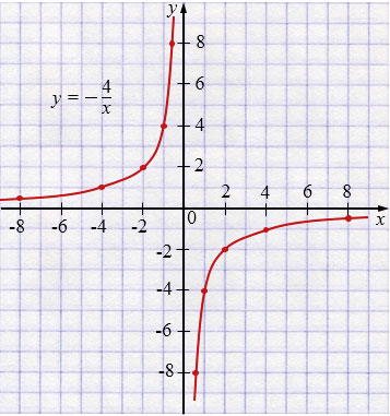 б) \( y = -\dfrac{4}{x} \).