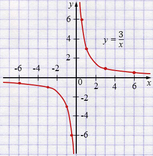 а) \( y = \dfrac{3}{x} \);
