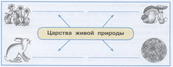 2. По символическим рисункам определяем названия царств и вписываем их в схему.