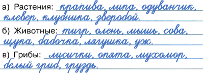 3. С помощью атласа – определителя "От земли до неба" приведи примеры представителей царств (не менее трёх в каждом пункте).