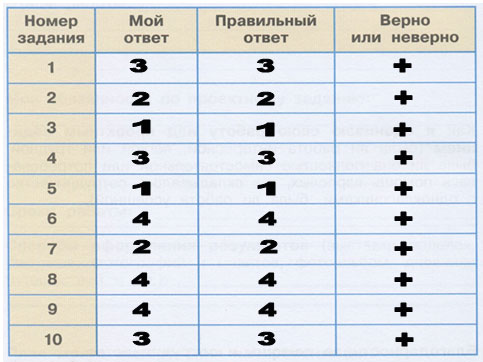 Выполни задания учебника на с. 122 – 127. При выполнении заданий заполняй таблицу. В столбце "Мой ответ" записывай ту букву, которая, на твой взгляд, соответствует правильному ответу. В столбце "Правильный ответ" запиши буквы так, как показано на "Страничках для самопроверки". Сравни эти два столбца и заполни третий: если твой ответ правильный, ставь знак "+", если неправильный – знак "–".