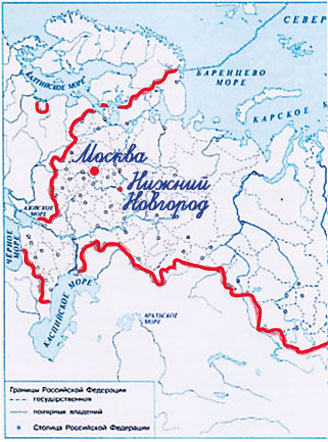 б) отмечаем (обводим красным карандашом) и подписываем столицу России;