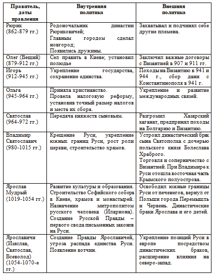 7. Продолжите заполнять таблицу "Деятельность русских князей".