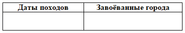 1. Заполните в тетради хронологическую таблицу "Походы Батыя на Русь".