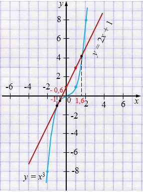 Ответ: \(x \approx 1,6,\) \(x \approx -0,6,\) \(x = 1.\)