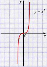 б) \( y = x^7 \);