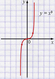 г) \( y = x^9 \)