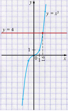 \(y = x^3\) и \(y = 4\)