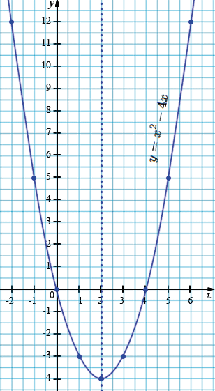Вершина параболы: \((2; -4)\). Прямая \(x=2\) - ось симметрии параболы.