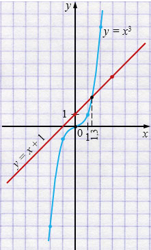 Для решения уравнений используется идея пересечения графиков функций. Уравнение вида \( x^3 = f(x) \) означает, что нужно найти точки пересечения графика функции \( y = x^3 \) и графика функции \( y = f(x) \).