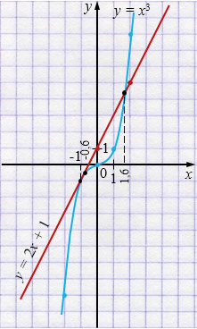 Ответ: \(x = -1\), \(x \approx -0,6\), \(x \approx 1,6\).
