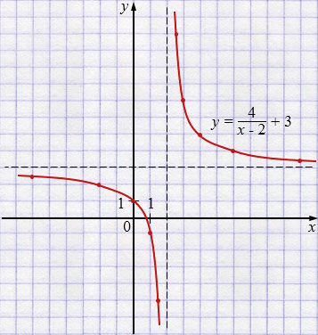 \(y=3 + \dfrac{4}{x-2}\) - гипербола.