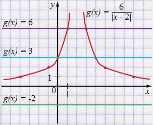 Постройте график функции \(g(x)=\dfrac{6}{|x-2|}\).