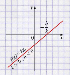 \(f(x) < 0\) при \(x < -\frac{b}{k}\).
