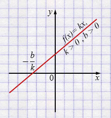 4. \(f(x) > 0\) при \(x > -\frac{b}{k}\),