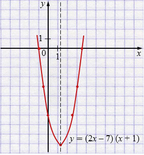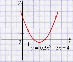 \(y_0 = 0,5\cdot3^ 2 - 3\cdot3 + 4 = -0,5\).