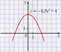 \(y_0 = -0,5\cdot 0^2 + 4 = 4\).