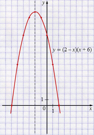 3. \(y = 0\) при \(x = -6\) и \(x = 2\).