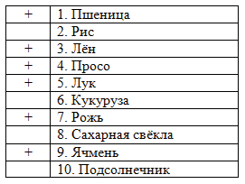1. Отметьте названия сельскохозяйственных культур, которые выращивали славяне.